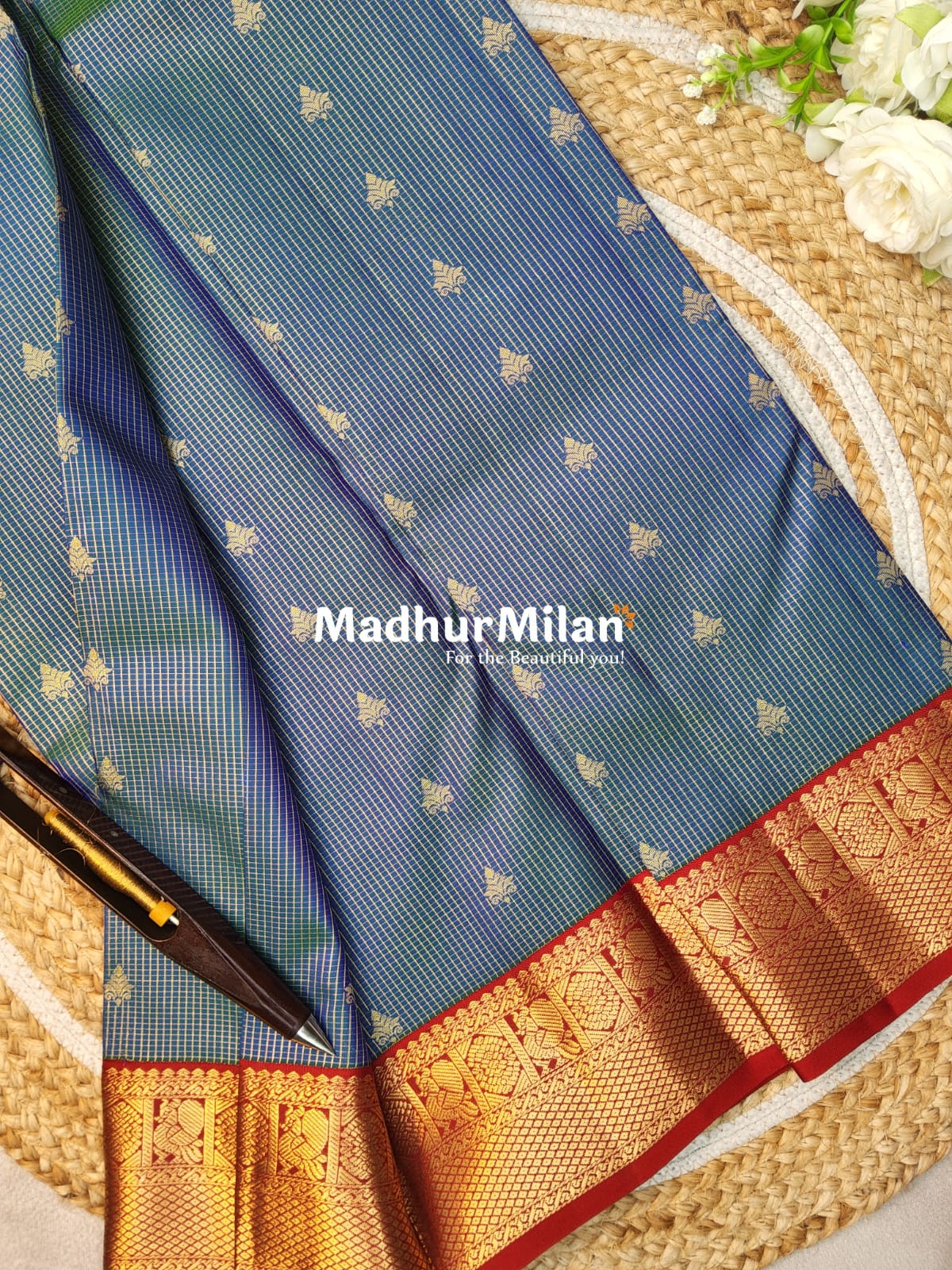Experience the allure of traditional Indian craftsmanship with this KANCHI CHECKS BUTTA BORDER SAREE RAMA RED.