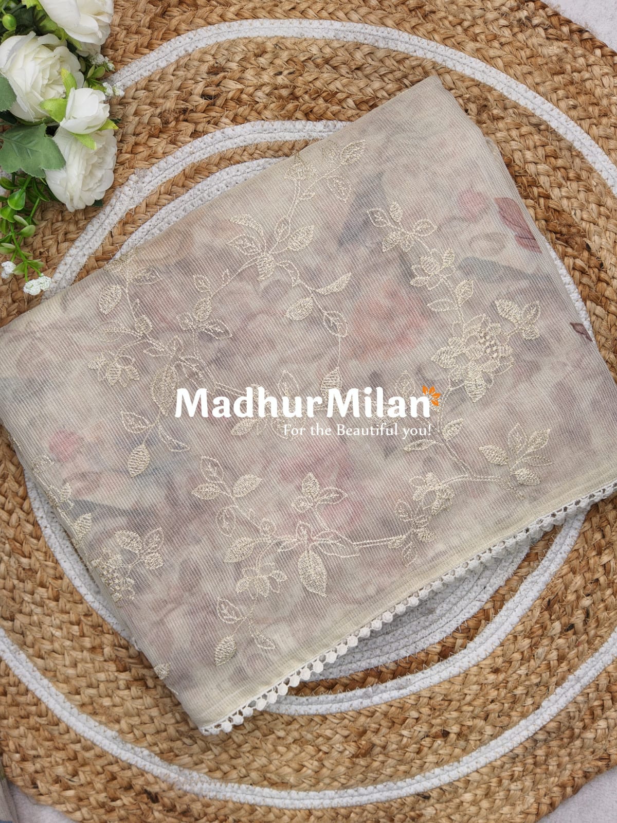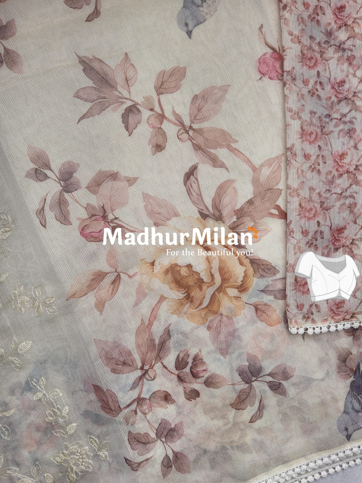 The Madhur Milan GOLD TISSUE EMBROIDERY WORK SAREE combines traditional craftsmanship with contemporary design, making it a must-have addition to your wardrobe.