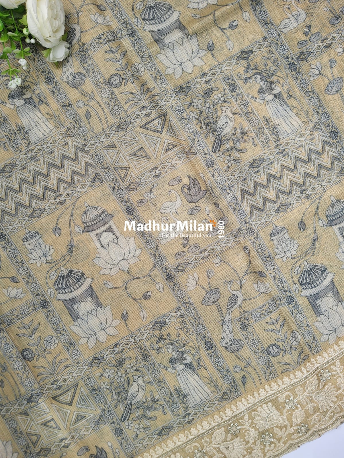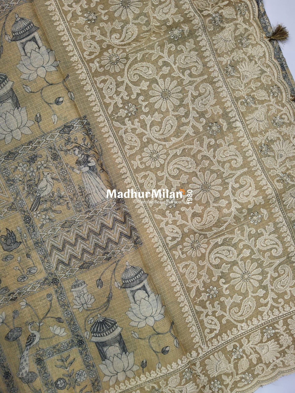 Description: Elevate your ethnic wardrobe with this exquisite Kota Embroidery Border Work Saree from Madhur Milan.