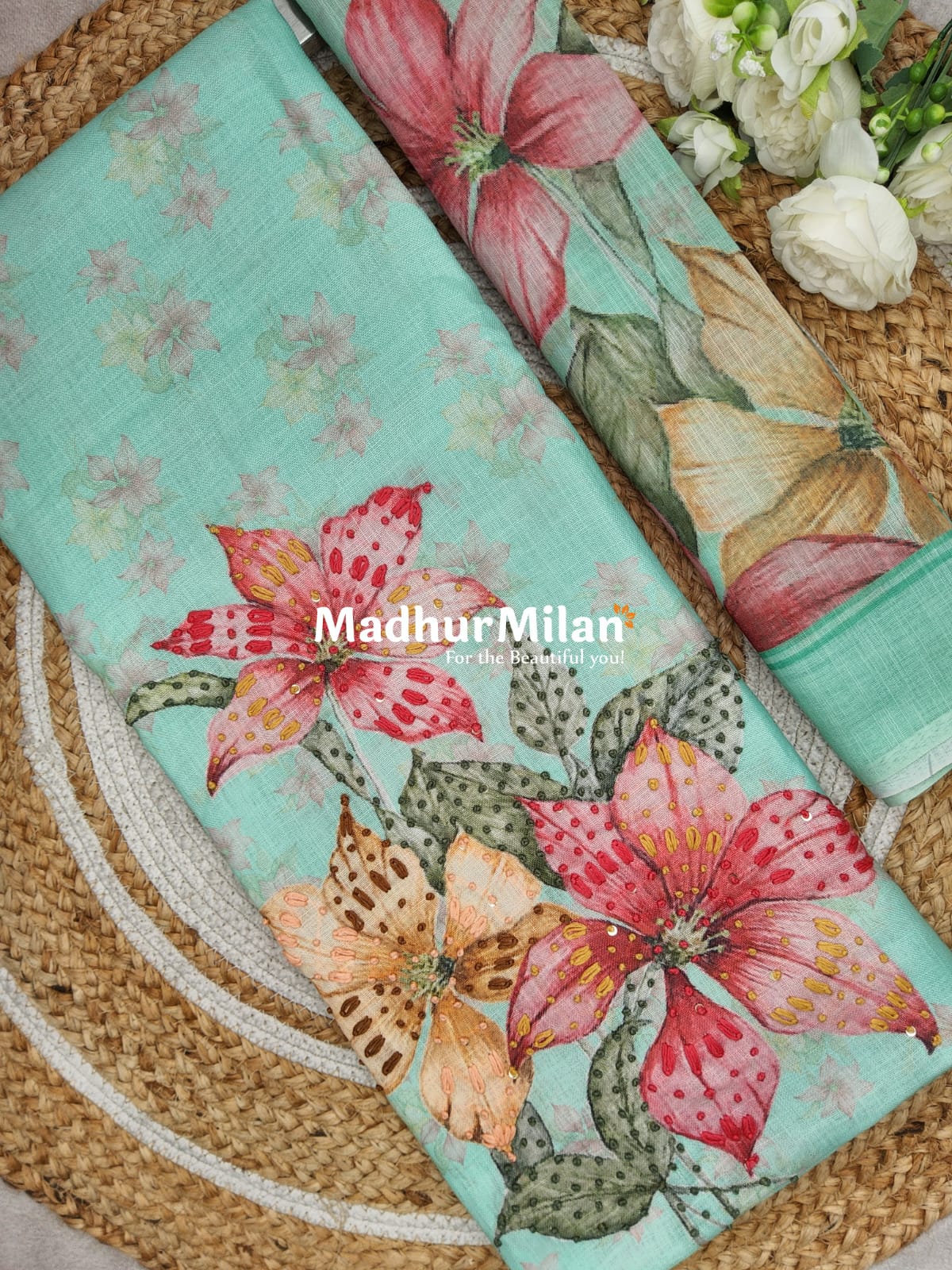 Product Name: LINEN FLORAL PANEL UNSTITCHED SALWAR SUIT MINT