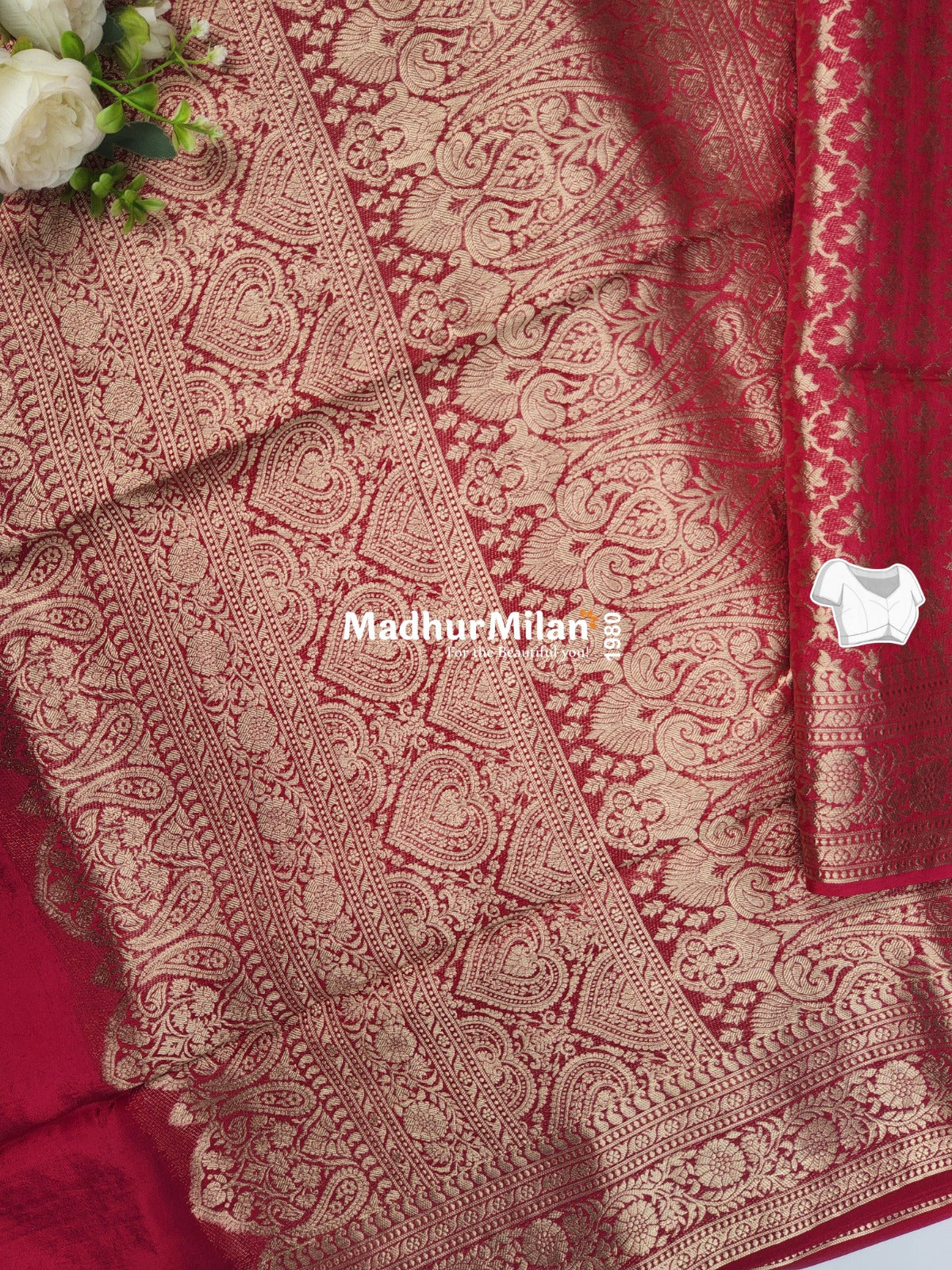 Crafted by Madhur Milan, a brand synonymous with quality since 1980, this saree is a testament to Indian craftsmanship and heritage.