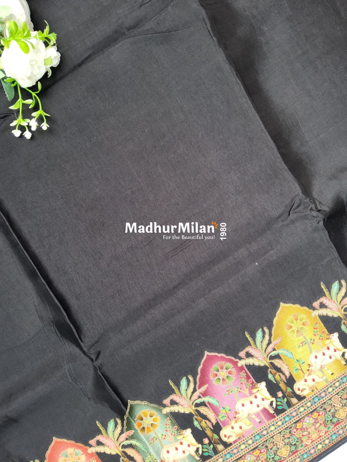- The saree features a plain black body that serves as a perfect canvas for the ornate brocade work