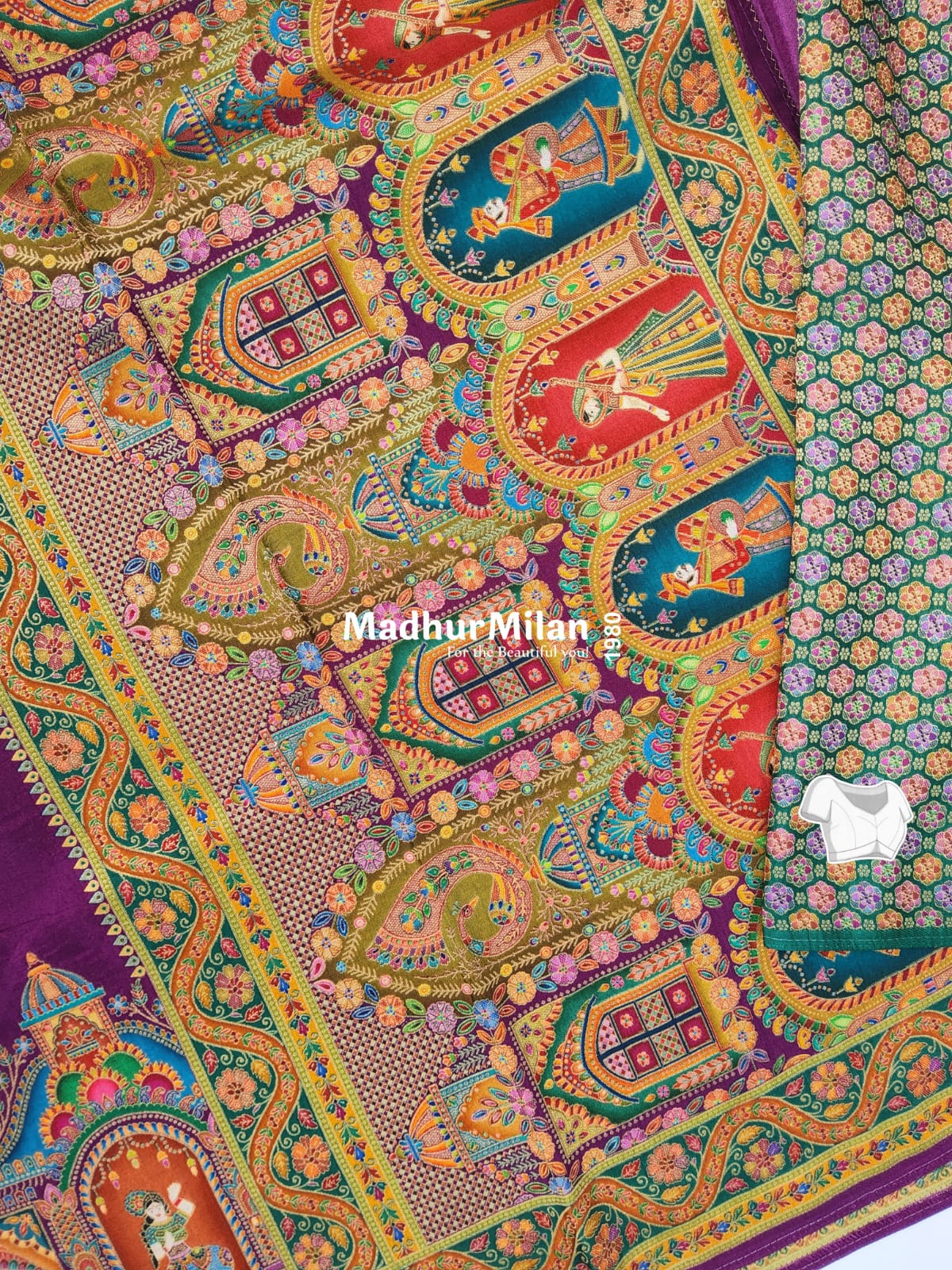 Description: Indulge in the opulence of our exquisite PASHMINA BROCADE SAREE PURPLE, a masterpiece from the house of Madhur Milan.