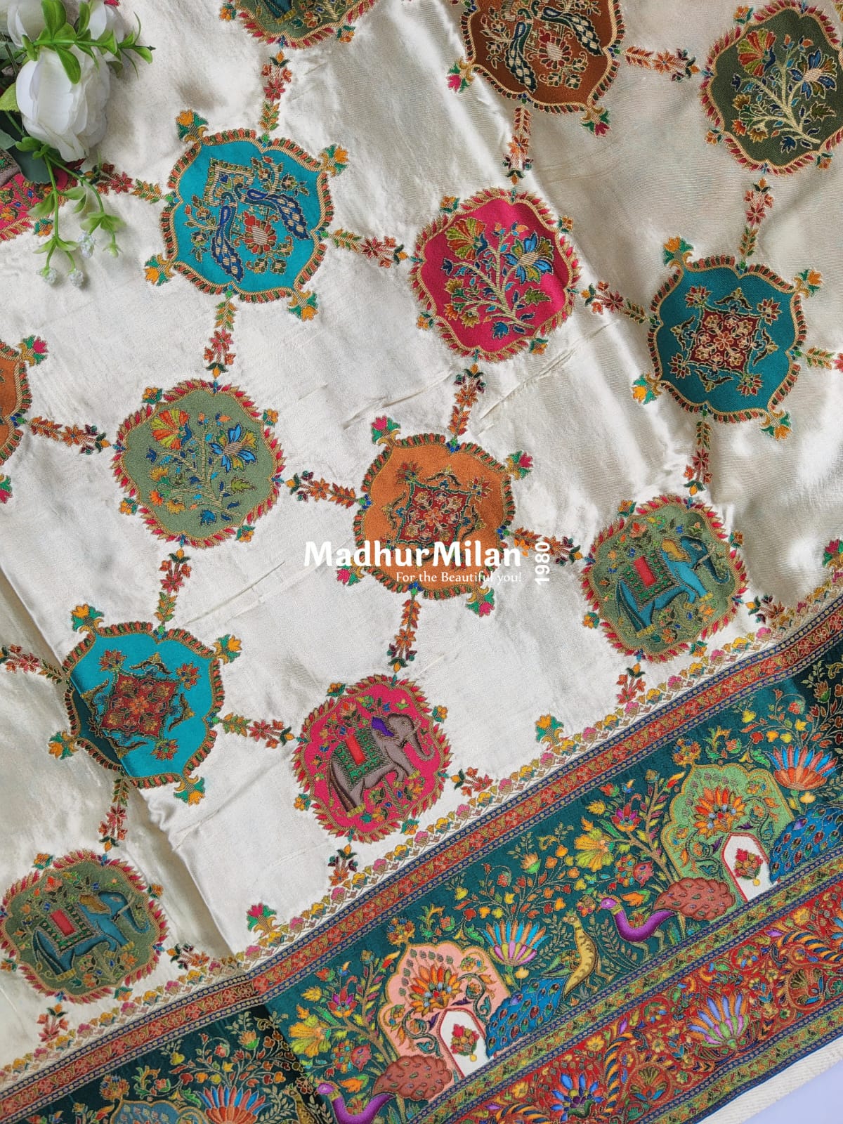 Product Name: PASHMINA SATIN BROCADE SAREE CREAM