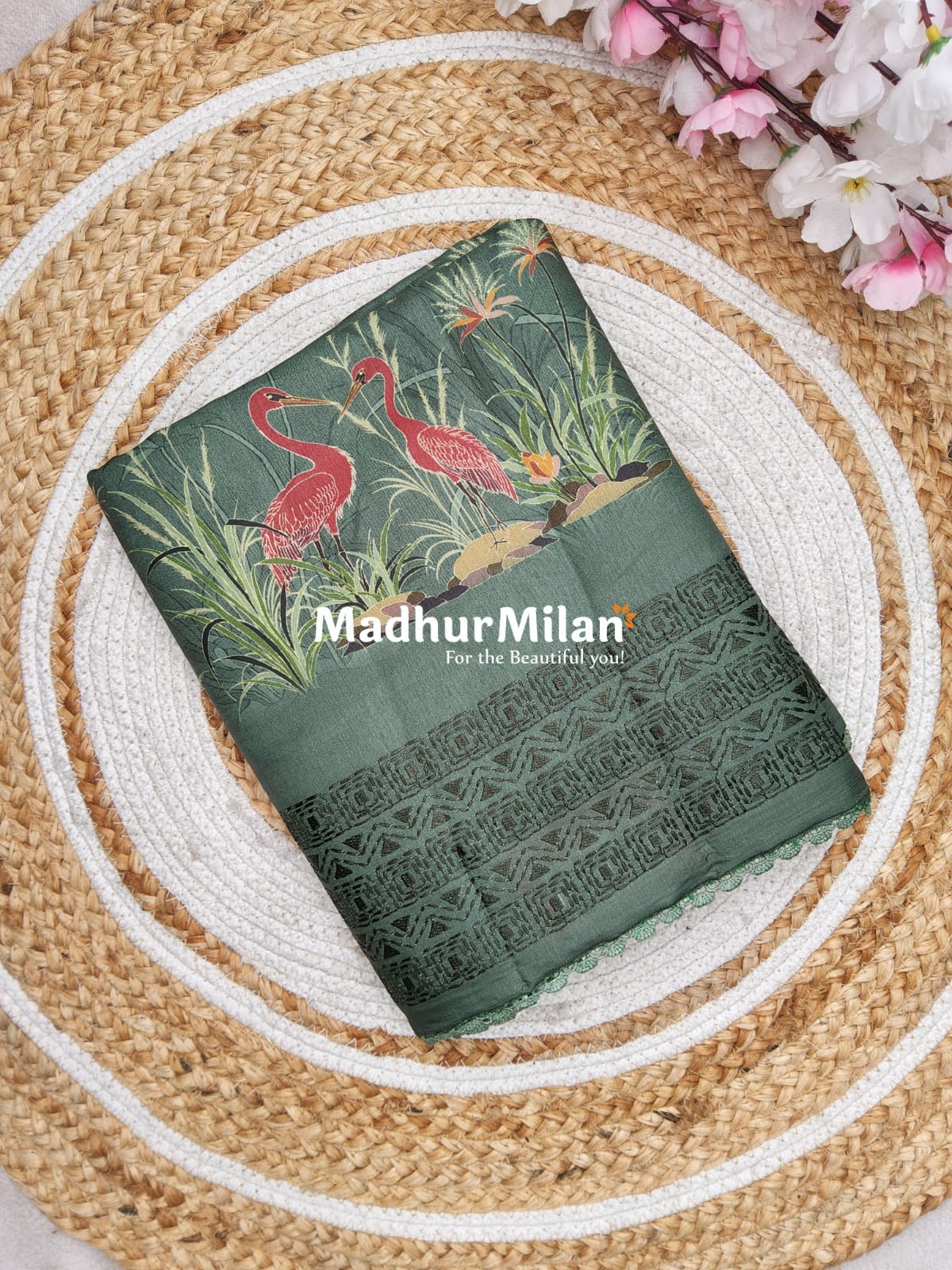 Make a statement with this Madhur Milan PEACOCK SILK SEMI TUSSER SAREE GREEN and embrace the beauty of nature-inspired fashion.