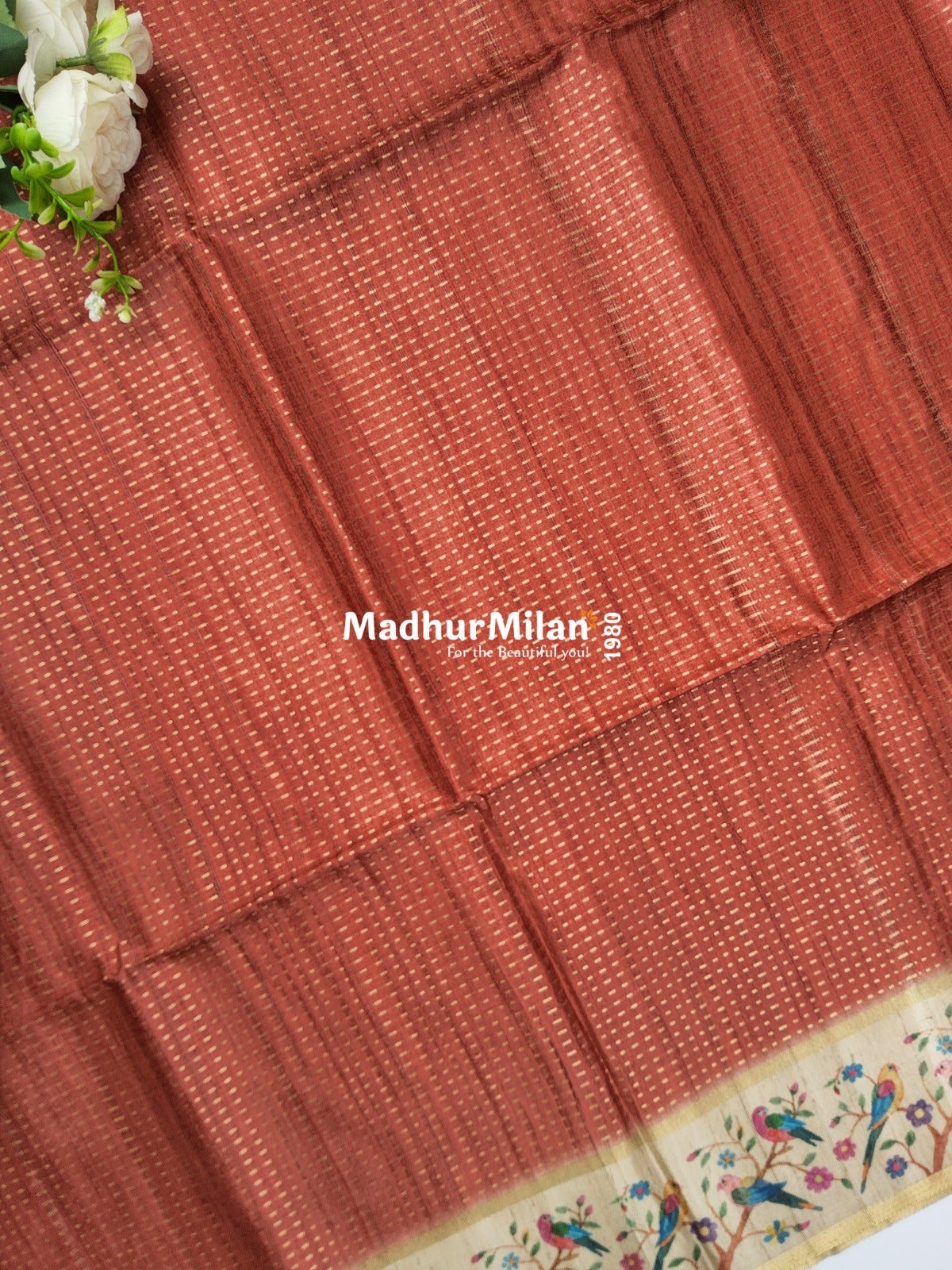 Product Description: PIN STRIPES DIGITAL SEMI TUSSER SAREE RUST