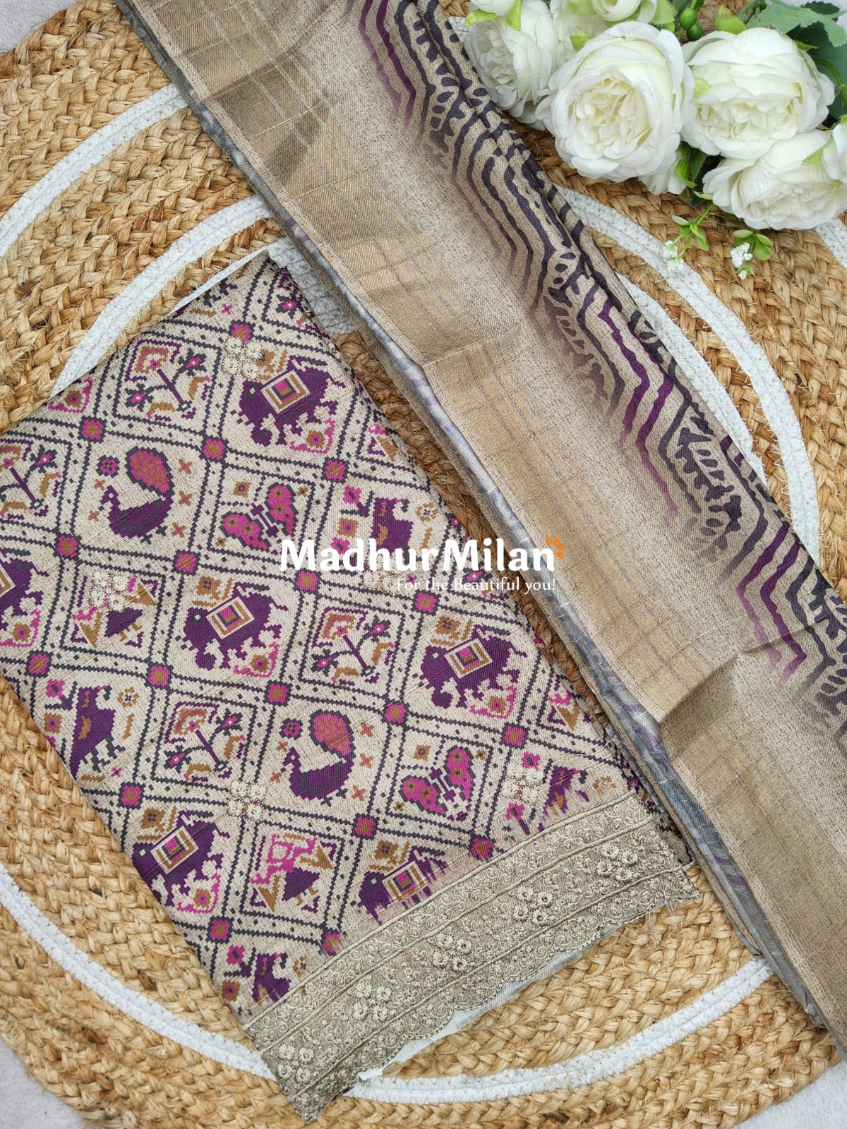 - Dupatta: Tusser silk with decorative border
