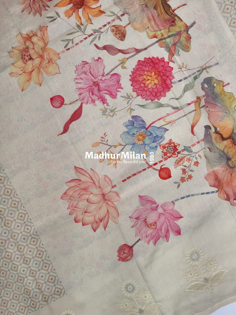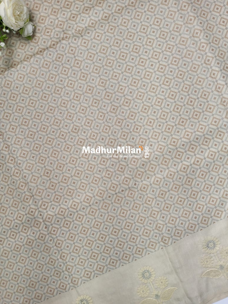 This Semi Tusser Embroidery Border Saree Brown is a testament to the brand Madhur Milan's commitment to creating beautiful, high-quality ethnic wear.
