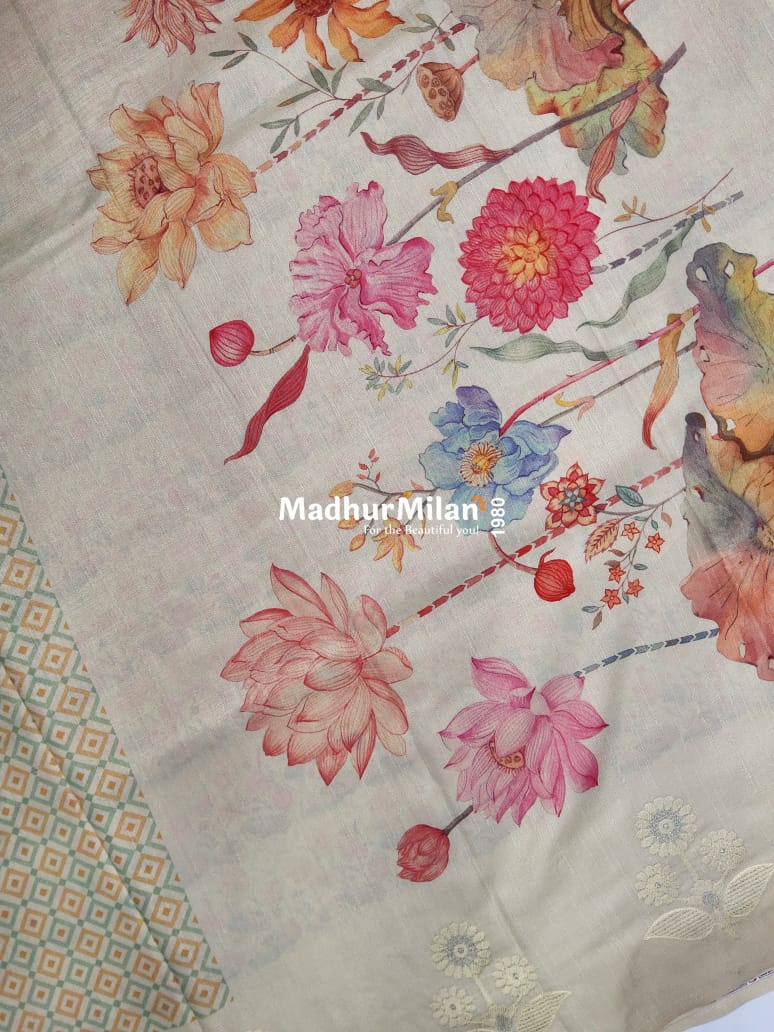 Embrace the beauty of traditional Indian craftsmanship with this Semi Tusser Embroidery Border Saree.