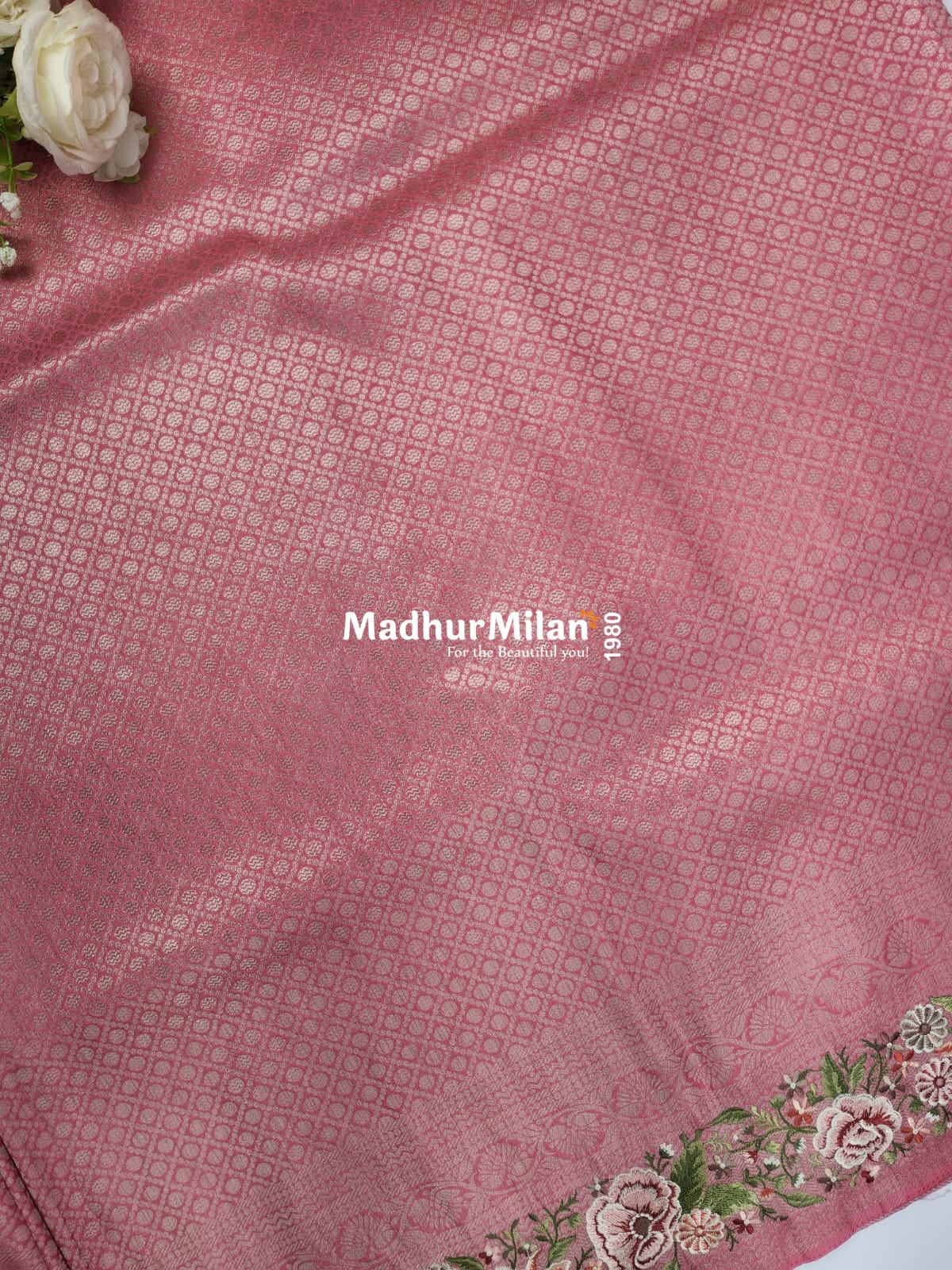 Description: Indulge in the epitome of elegance with our exquisite Soft Silk Embroidery Work Saree from Madhur Milan.