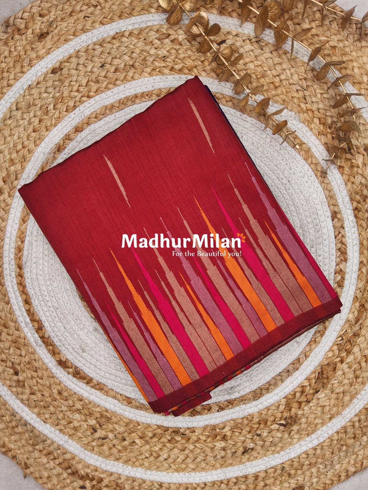 Make a statement at your next event with this Temple Silk Saree from Madhur Milan. Its unique design and vibrant colors are sure to turn heads and make you feel truly beautiful.